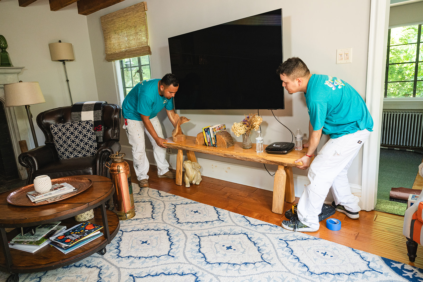 - We move and cover furniture to protect your belongings.